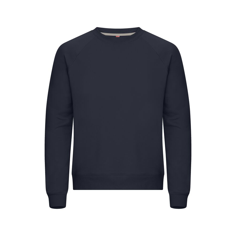 cuello redondo unisex de calidad french terry. mezcla de algodón y poliéster reciclado. mangas raglán y canalé elástico 2x2 con una sola costura en el cuello, la parte inferior de la manga y el dobladillo. cinta de espiga en color de contraste en el cuello y etiqueta fácilmente extraíble.