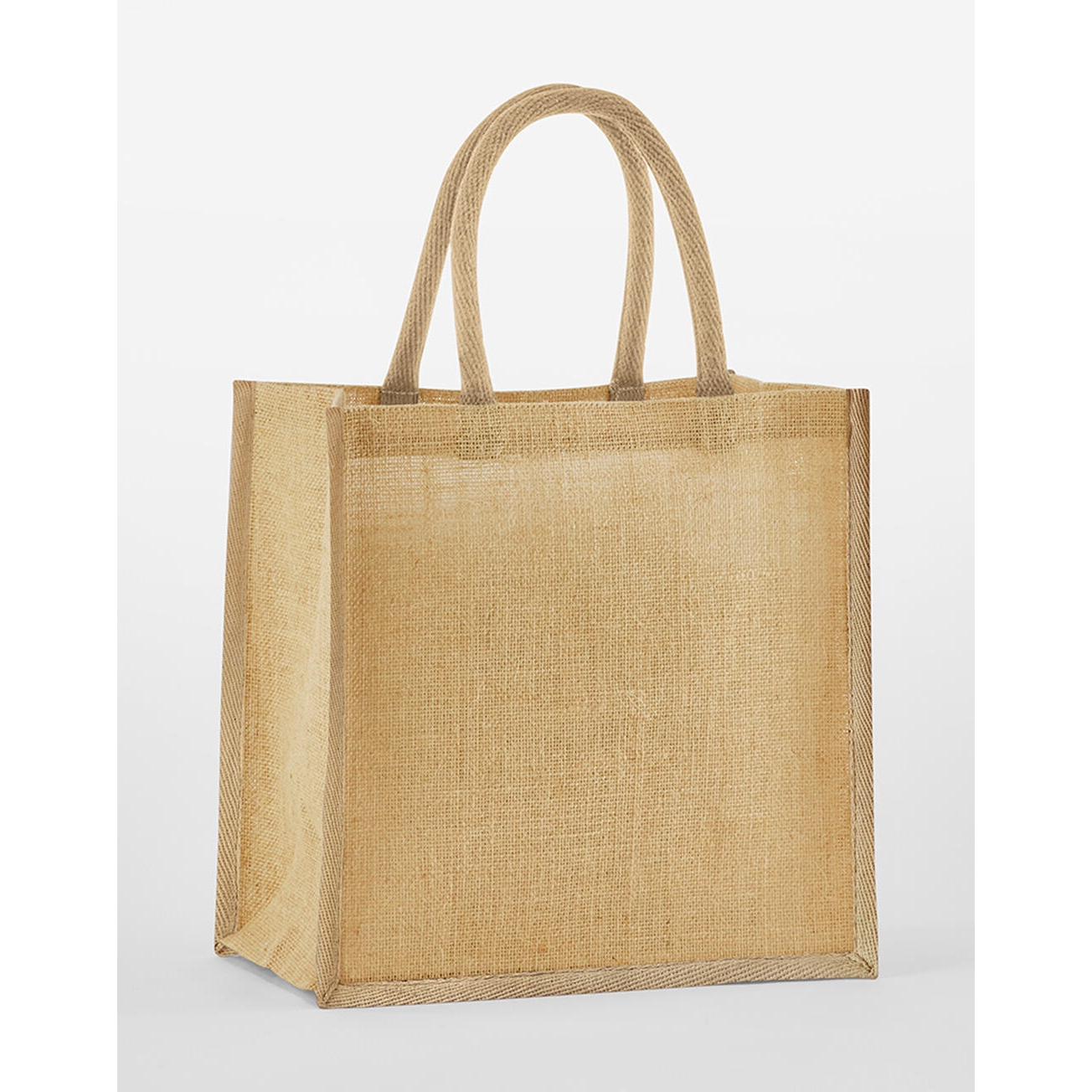 100% yute (sin laminar y almidonado). asas de transporte de algodón (longitud: 35cm). etiqueta extraíble para facilitar el cambio de marca. capacidad: 6 litros. dimensiones: 26x22x14cm. máx. bordado: aro de 15 tubulares. máx. área de impresión: 22x17 cm.