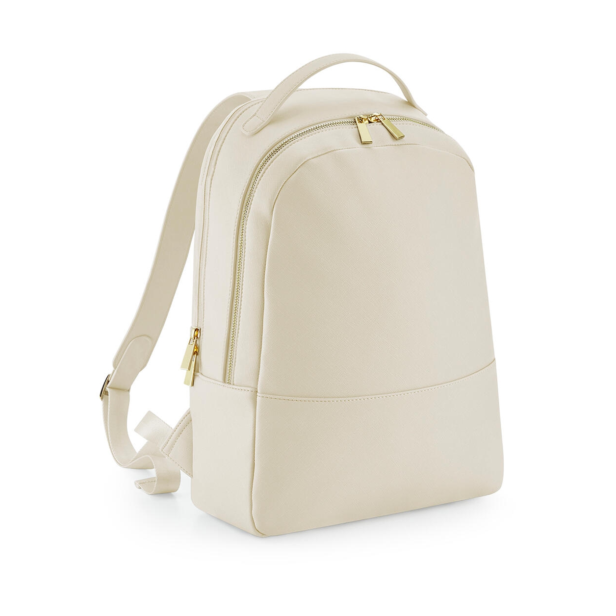 100% poliuretano (aspecto cuero). grano fino saffiano con forro suave al tacto. cremalleras de metal dorado de alto brillo. asa y correas de hombro ajustables del mismo tejido. asa de equipaje . compartimento principal con cremallera. compartimento acolchado para portátil compatible hasta 14 . bolsillo interno de organización y soporte para botella de agua. bolsillo discreto con cremallera en el panel trasero. bolsillo interior con cremallera para objetos de valor. etiqueta extraíble para facilitar el cambio de marca. capacidad: 10 litros. dimensiones: 30 x 41 x 11 cm. max. bordado: 18 aro tubular. max. área de impresión: 19 x 19 cm.