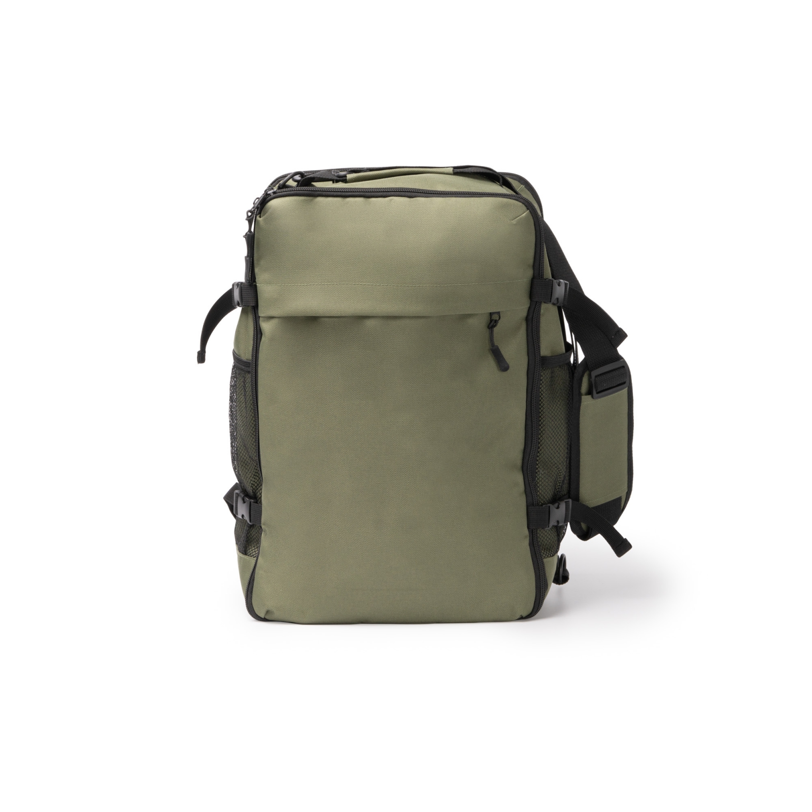 mochila para viaje de gran capacidad elaborada en rpet 600d con apertura de 180ª. cuenta con un compartimento principal de gran capacidad con pequeños separadores internos con diferentes tamaños, para hacer más fácil la organización y guardado de enseres. las hebillas ajustables de sus laterales permiten acomodar el contenido de este compartimento principal. incorpora un bolsillo frontal exterior de gran amplitud con cierre de cremallera. en su parte trasera cuenta con un compartimento acolchado, además, cuenta con dos bolsillos laterales elaborados en tejido de rejilla con ajuste elástico para guardar botellas e incluye un bolsillo antirrobo en el reverso de la mochila que sirve también como espacio de guardado de las asas, que se pueden separar del cuerpo de la mochila gracias al mosquetón que incorporan. para mayor comodidad en su transporte, esta mochilla cuenta tanto con asas como con una cinta bandolera ajustable de transporte extraíble mediante mosquetones. tanto las asas como la espalda van acolchadas. incluye cinta para trolley.