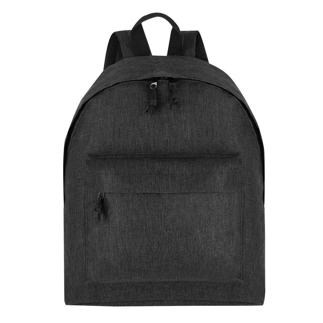 mochila fabricada en suave poliéster rpet 600d y diseño jaspeado. con bolsillo principal de cierre de cremallera con doble tirador metálico negro con cordón para fácil agarre. incluye bolsillo frontal con cierre de cremallera. espalda y cintas acolchadas ajustables. con distintivo de rpet en etiqueta.