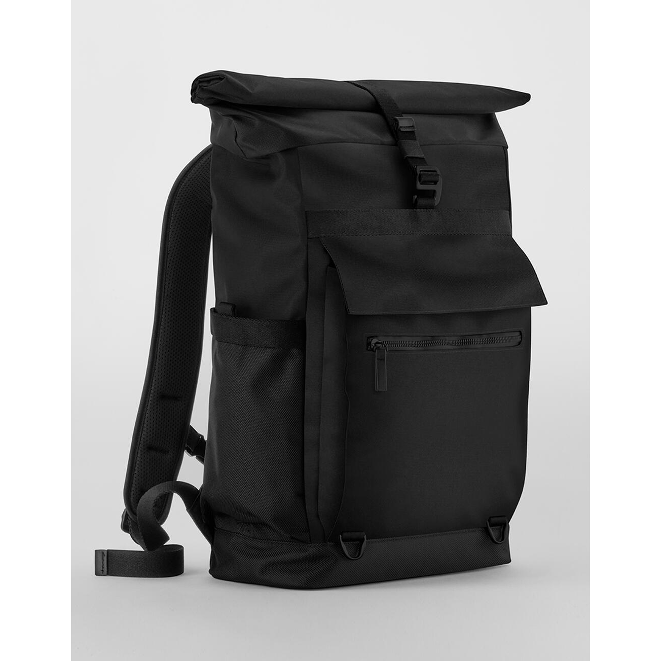 100% poliéster (reciclado, 900d, 1680d). correas de hombro ajustables y acolchadas. correa para equipaje trasero. cierre enrollable. compartimento trasero acolchado para portátil, compatible hasta 16. bolsillo frontal con solapa de cierre magnético y bolsillo frontal con cremallera. bolsillos laterales de fácil acceso. etiqueta extraíble para facilitar el cambio de marca. capacidad: 22 litros. dimensiones: 46x38x13cm. máx. bordado: aro de 15 tubulares. máx. área de impresión: 16x22 cm.
