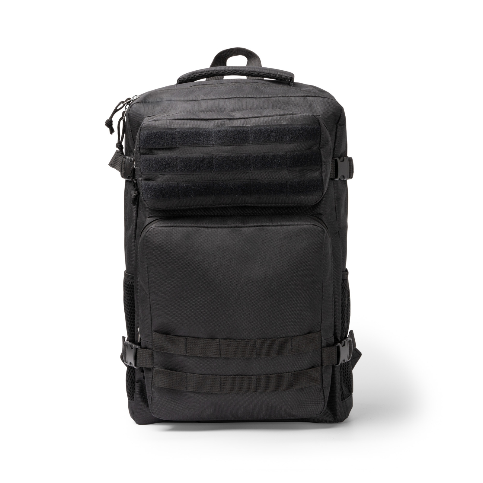mochila estilo deportiva elaborada en rpet 600d. con bolsillos de diferentes tamaños en su parte frontal ofreciendo mayor versatilidad en el transporte de enseres. compartimento principal con apertura total y compartimento para portátil de hasta 17´. cuenta con cintas de ajuste en sus laterales y bolsillos en tejido de rejilla para botellas, además de diferentes puntos de anclaje para sujetar o asegurar objetos adicionales. espalda y asas acolchadas.