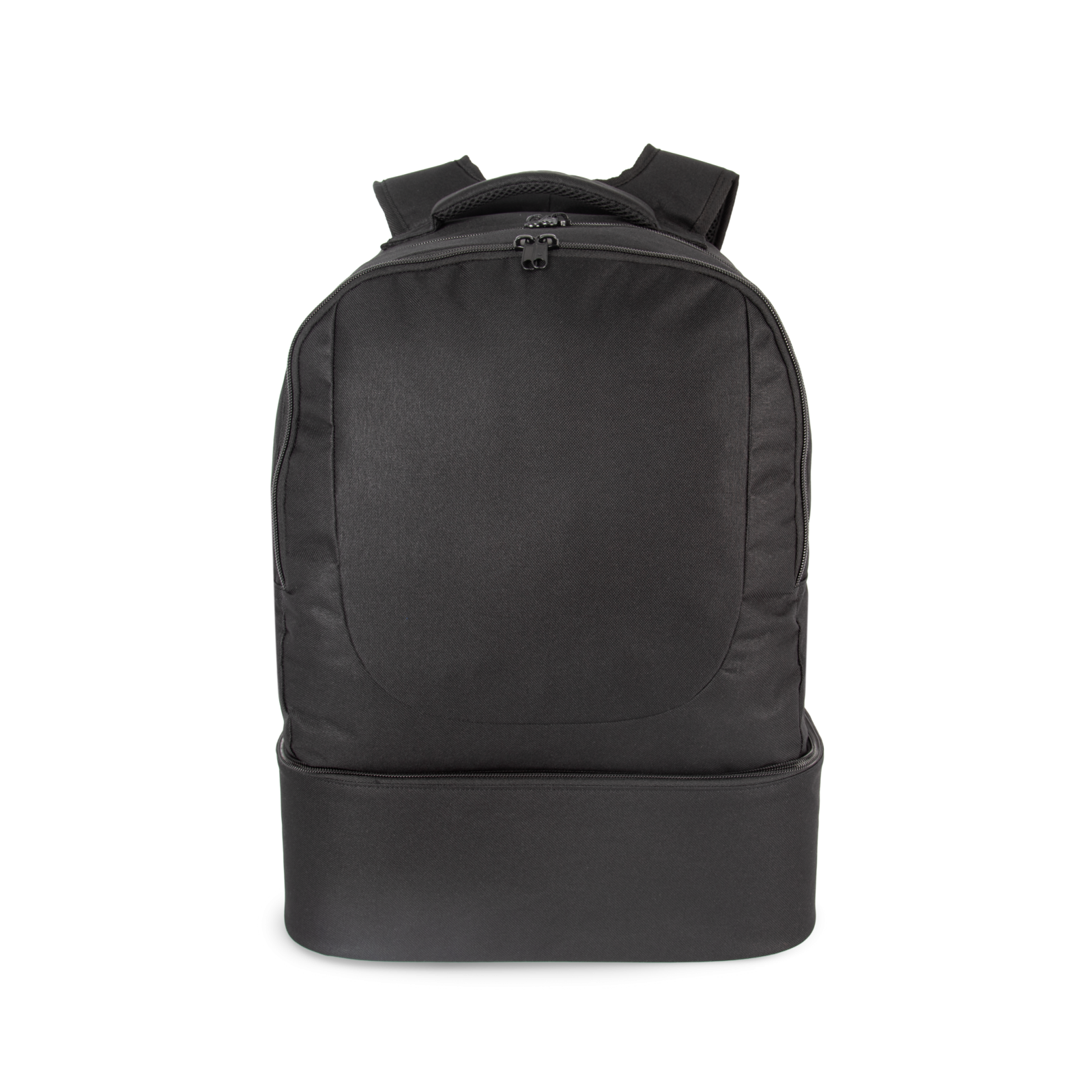 100% poliéster. panel frontal de dos colores. compartimento principal grande con cierre de doble cremallera. bolsillo frontal profundo con doble cremallera. tirantes ergonómicos acolchados con costuras reforzadas para que sea más resistente. respaldo acolchado con malla transpirable. asa superior acolchada y transpirable con costuras reforzadas. fondo rígido. el panel rígido situado dentro del forro se puede quitar a través de un cierre con cremallera, lo que facilita la personalización de la mochila y permite lavarla a máquina. asas reforzadas y espalda transpirable para mayor comodidad. gran volumen con doble bolsillo delantero.bolsa deportiva.