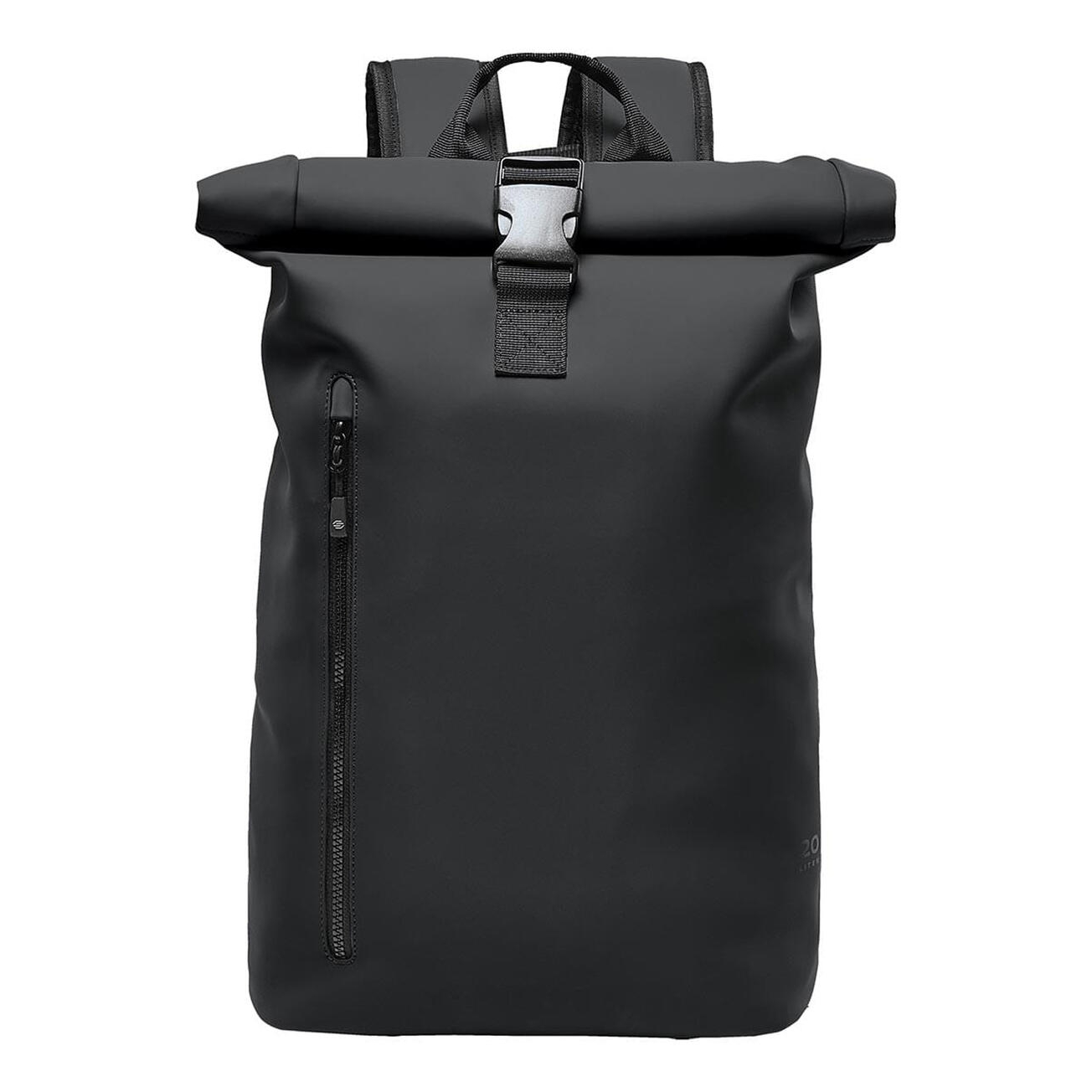 100% poliéster (recubierto de pvc). tela impermeable. asa de transporte reforzada. cierre enrollable con correa ajustable. correas de hombro ergonómicas ajustables. acolchado en la espalda con malla transpirable. bolsillo interno con cremallera. este producto está respaldado por una garantía de 5 años.