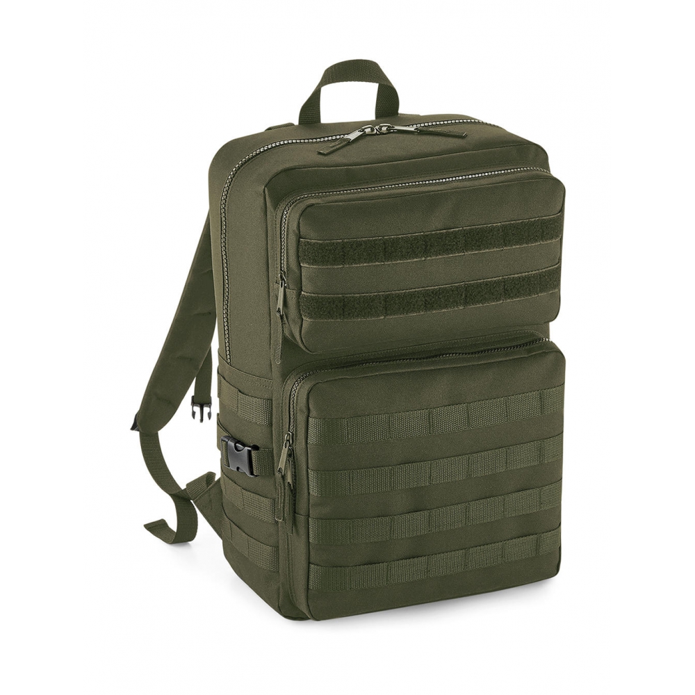 100% poliéster (600d). diseño militar. asas de mano y correas de compresión. correas ajustables y acolchadas. panel trasero acolchado. detalle de cinta molle. compartimento principal con cremallera y bolsillo interno . 2 bolsillos delanteros grandes con cremallera. etiqueta extraíble para facilitar el rebranding . compatible con el parche de utilidad molle bg840 (955.29). compatible con los multibolsillos modulr ™ bg241 (934.29) y bg242 (935.29). capacidad: 25 litros. medidas: 30 x 45 x 22 cm. max. bordado: 9 aros tubulares. max. área de impresión: 9 x 6 cm.