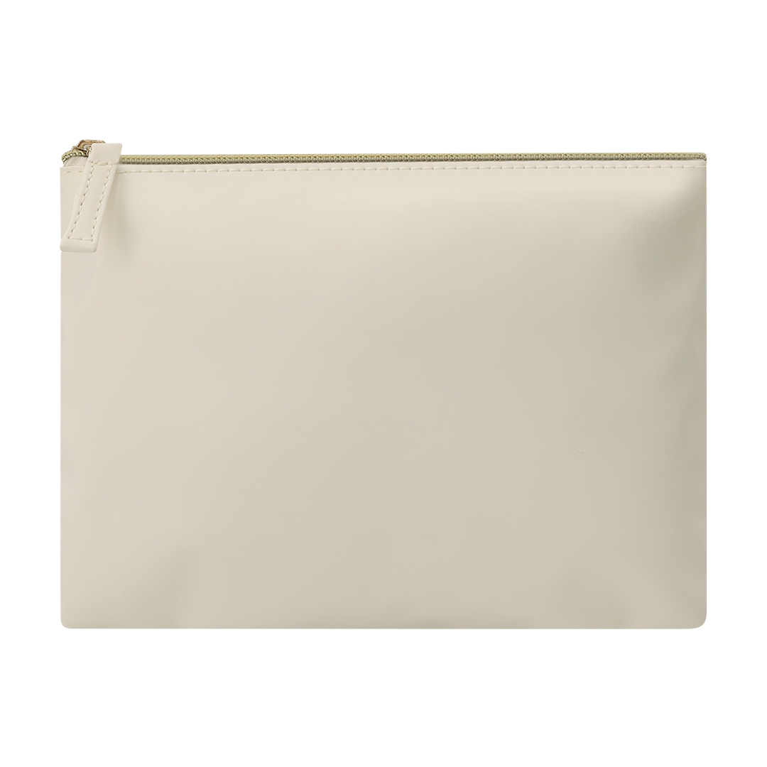 neceser confeccionado en pu de elegante. compartimento principal con cierre de cremallera con tirador.