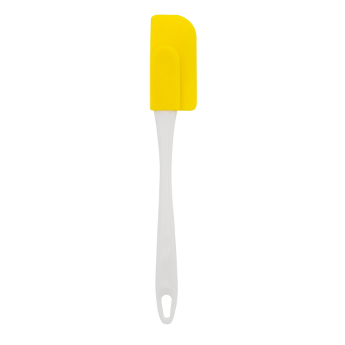 paleta de cocina con extremo de silicona en vivos colores y confortable mango ergonómico con troquelado para colgar.
