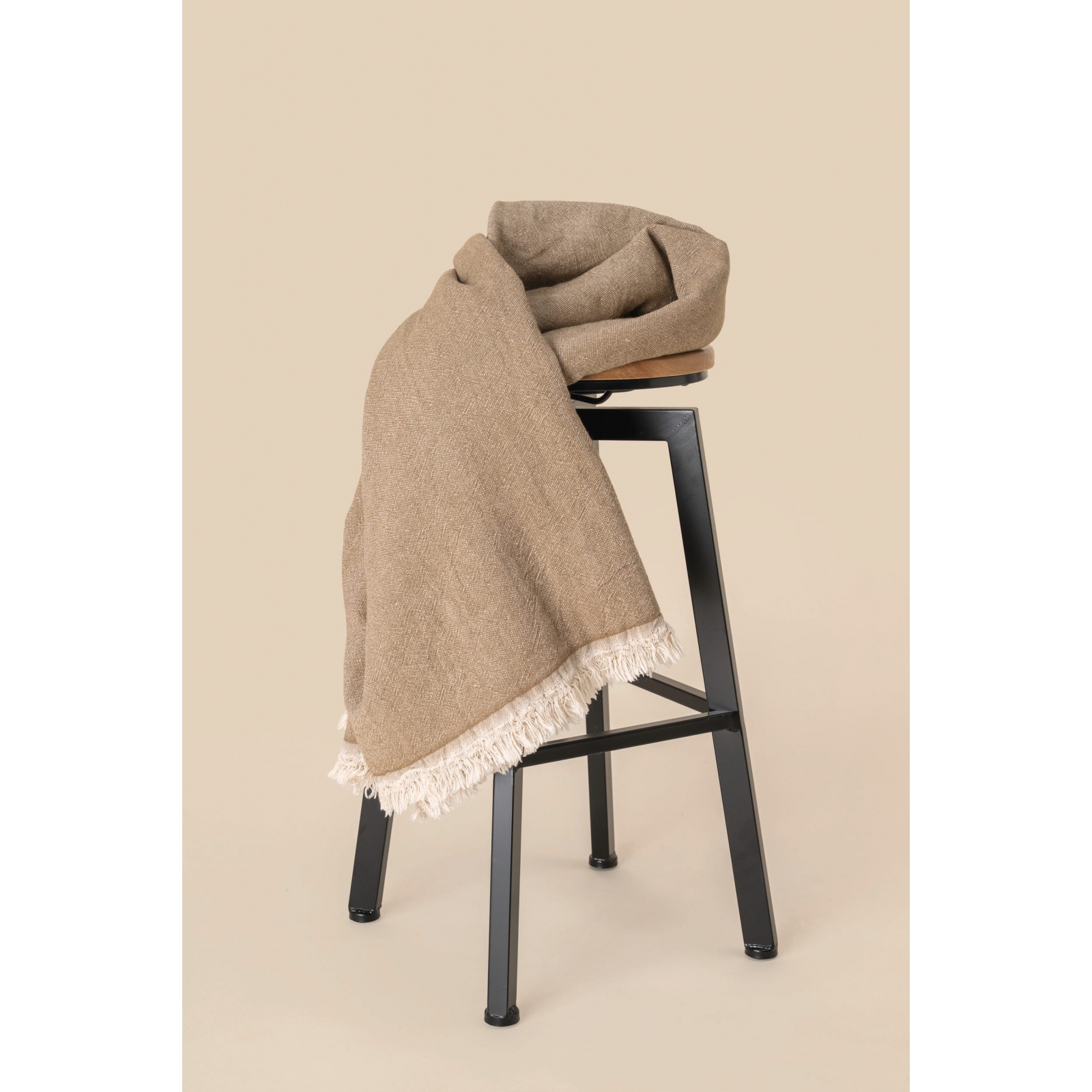 65% algodón, 35% lino. dimensiones: 135 x 180 cm (pueden variar según la complejidad del tejido). producto lavado. pareo con flecos en los extremos y tejido de doble cara con efecto texturizado, con una de ellas en tonos beige más claros. acabado natural y texturizado. acabado natural y texturizado.pareo.