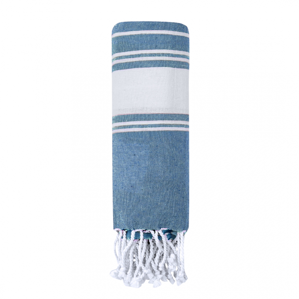 suave pareo de toalla de 180g/m2 en combinación de algodón y poliéster. disponible en variada gama de colores en tono bicolor. presentado individualmente en bolsa.