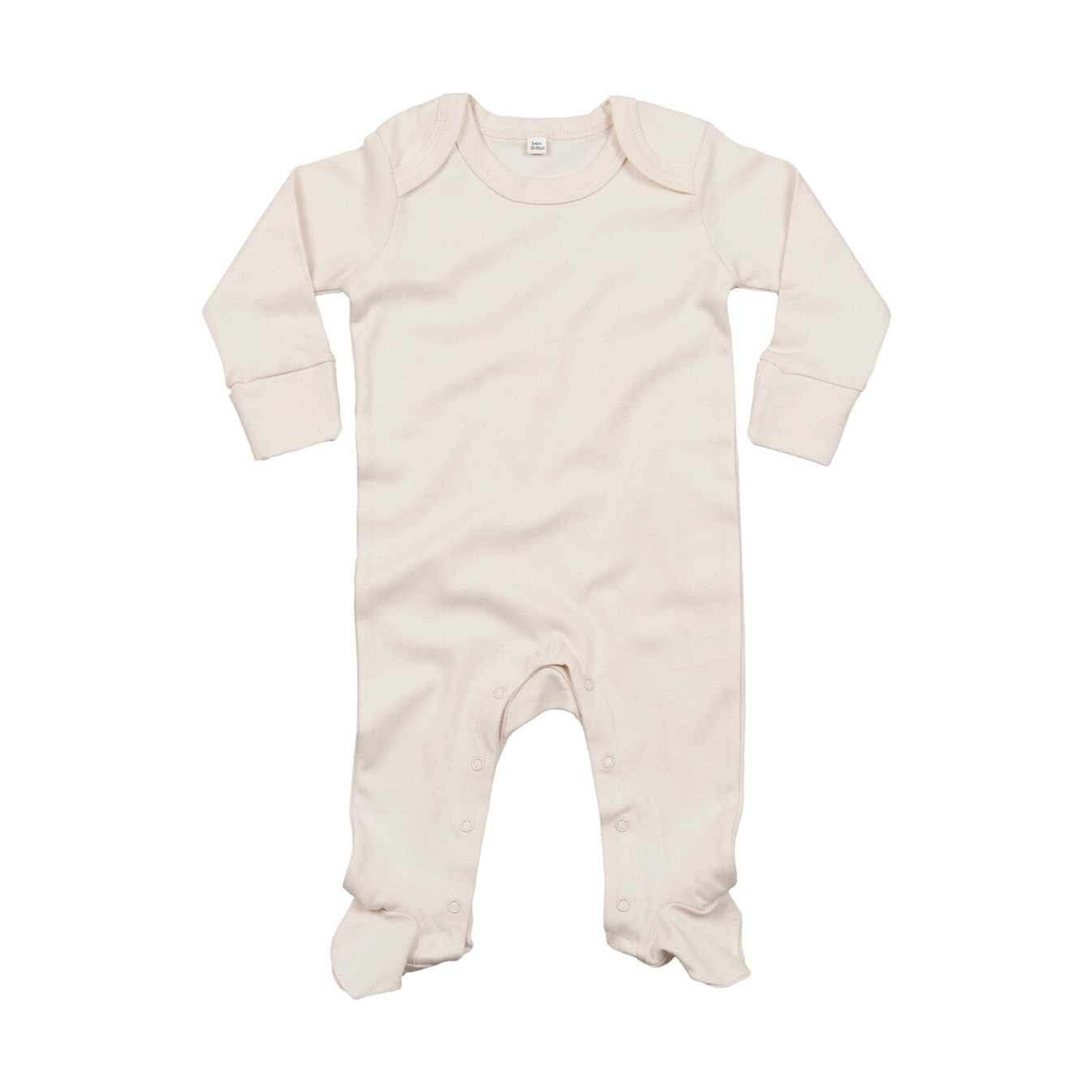 200 g/m². 100% algodón orgánico. cuello abierto con suave ribete en canalé. cuello y mangas cómodos. con guantes ajustables en puños. corchetes sin níquel para fácil colocación. con pies. etiqueta extraíble.