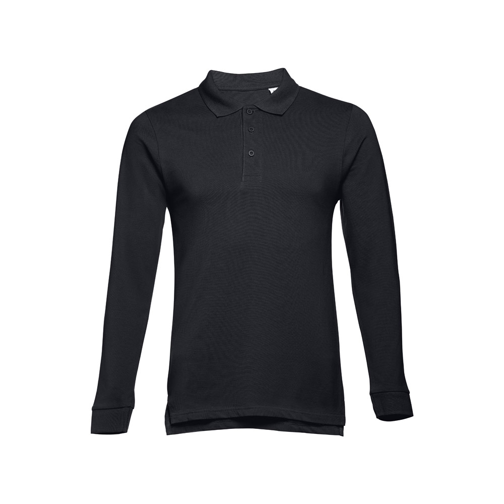 polo unisex de manga larga en piqué cardado de algodón 100% (210 g/m²) (color 183: 85% algodón/15% viscosa). polo de corte regular con cuello y puños de canalé. el cuello está reforzado con cinta de piqué y contiene tapeta reforzada con 3 botones a juego con el color del polo (botón de repuesto insertado en la costura interior). pieza cortada y cosida con aberturas laterales en la parte inferior. talla: 3xl