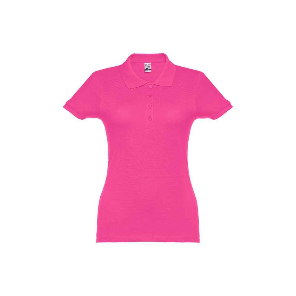 polo de mujer de manga corte en piqué de algodón 100% (195 g/m²) (color 183: 85% algodón/15% viscosa) con cuello y mangas ´en rib´. lleva cinta de refuerzo en el cuello y tapeta reforzada con 3 botones a juego con el color del polo (botón de repuesto en la costura interior). pieza cortada y cosida con pequeñas aberturas laterales en la parte inferior del polo. tallas: s, m, l, xl, xxl