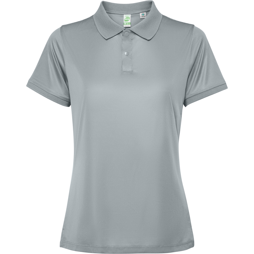 polo técnico entallado de marga corta para mujer. cuello de poliester rib 1x1 con corchetes de plastico a tono con la tapeta. cubrecosturas a tono. manga con acabado rib 1x1 al tono.