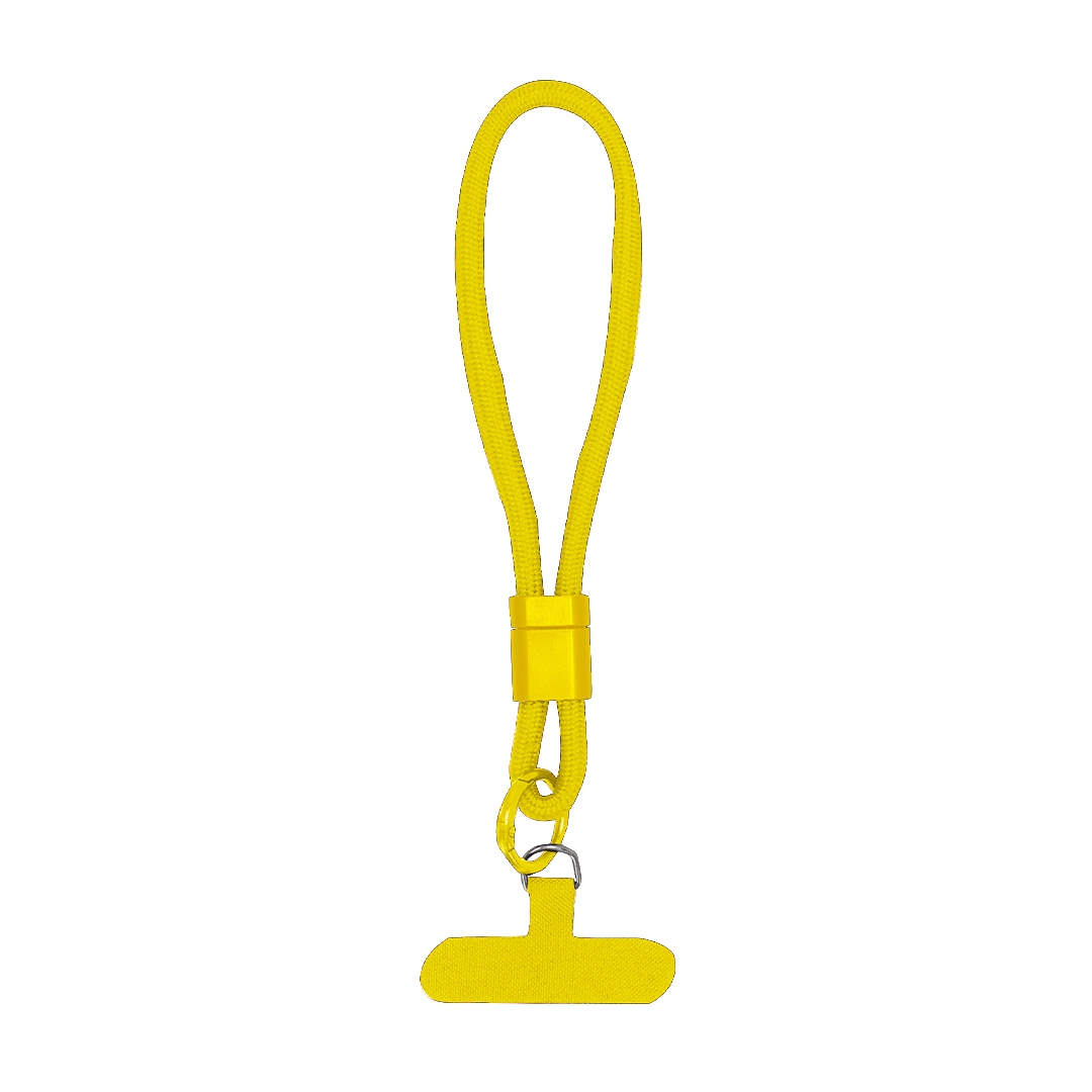pulsera soporte fabricada en suave poliéster. accesorio de transporte para situar entre la funda y el smartphone, con accesorio plástico para ajuste en muñeca.