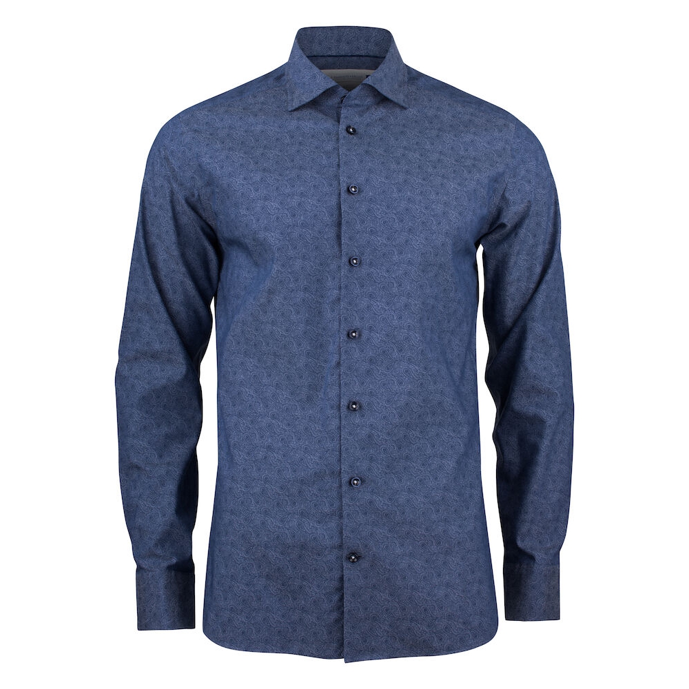 camisa discreta a la par que atrevida con estampado paisley de color índigo. póntela con o sin corbata, de cualquier forma te permitirá estar cómodo y elegante todo el día gracias a nuestro famoso non iron y su elasticidad natural.