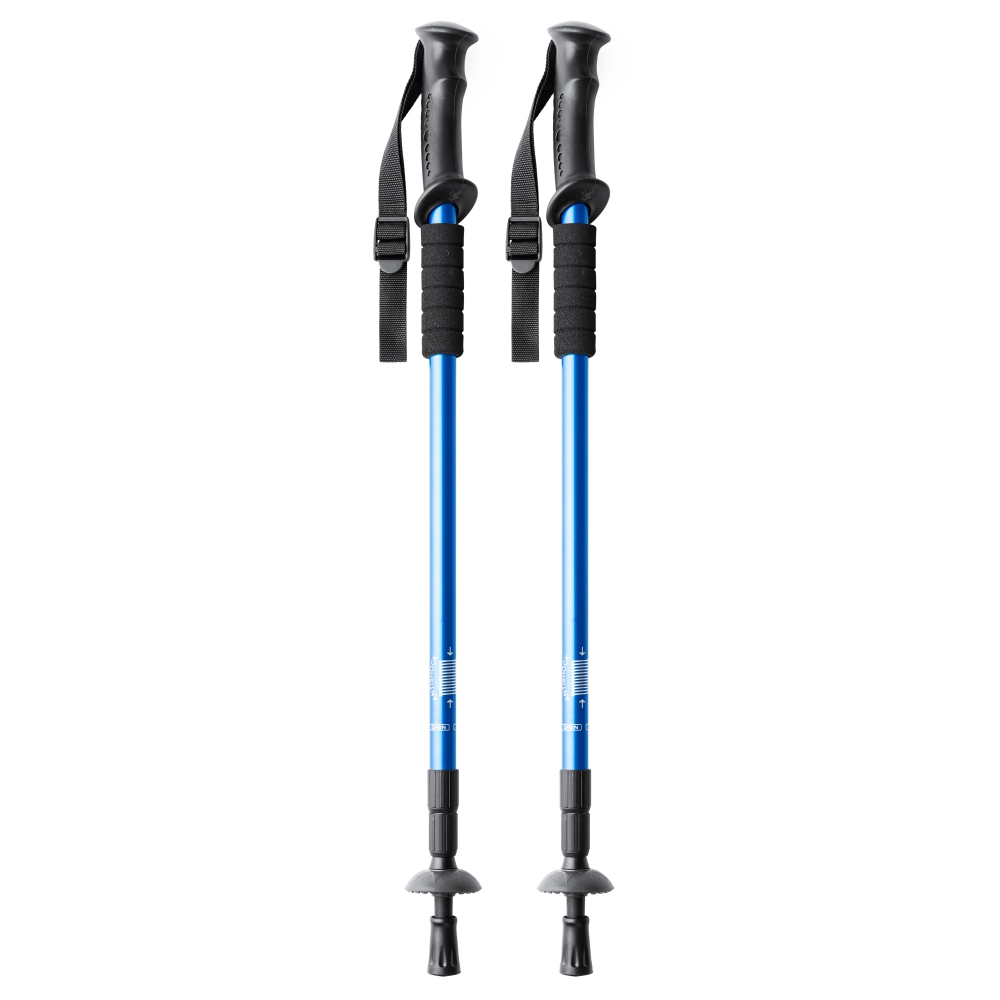 set de bastones de trekking plegables en aluminio con sistema de amortiguación. agarre ergonómico y cinta de seguridad ajustable. incluye accesorio para nieve. superficie de contacto con el suelo reforzada.