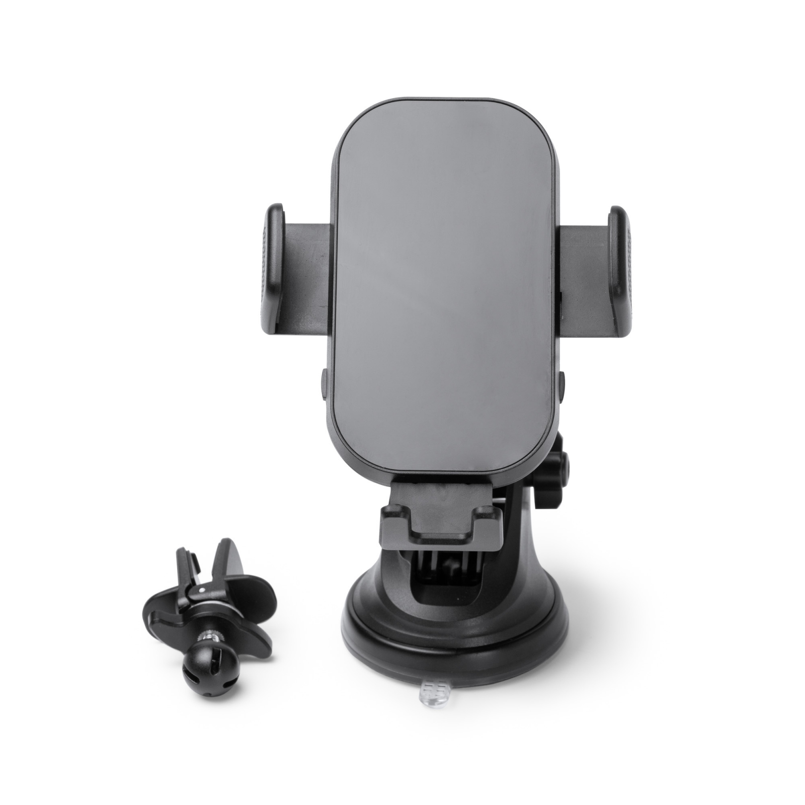 soporte de coche para smartphone con cargador con potencia en carga inalámbrica de hasta 15w con dos piezas intercambiables. una de ellas cuenta con soporte para salida de aire con pinza con cierre mecánico y la otra pieza cuenta con ventosa para sujeción desde la luna del coche, que además está formado por un brazo extensible que permite llevarlo en una posición óptima, pudiendo modificar la posición del soporte mediante su mecanismo giratorio. el soporte es compatible para todos los dispositivos que incorporan tecnología para carga inalámbrica, ofreciendo un ajuste muy resistente gracias a su regulación automática lateral. también cuenta con un ajuste manual en la parte inferior para mantener tu smartphone a la altura perfecta.