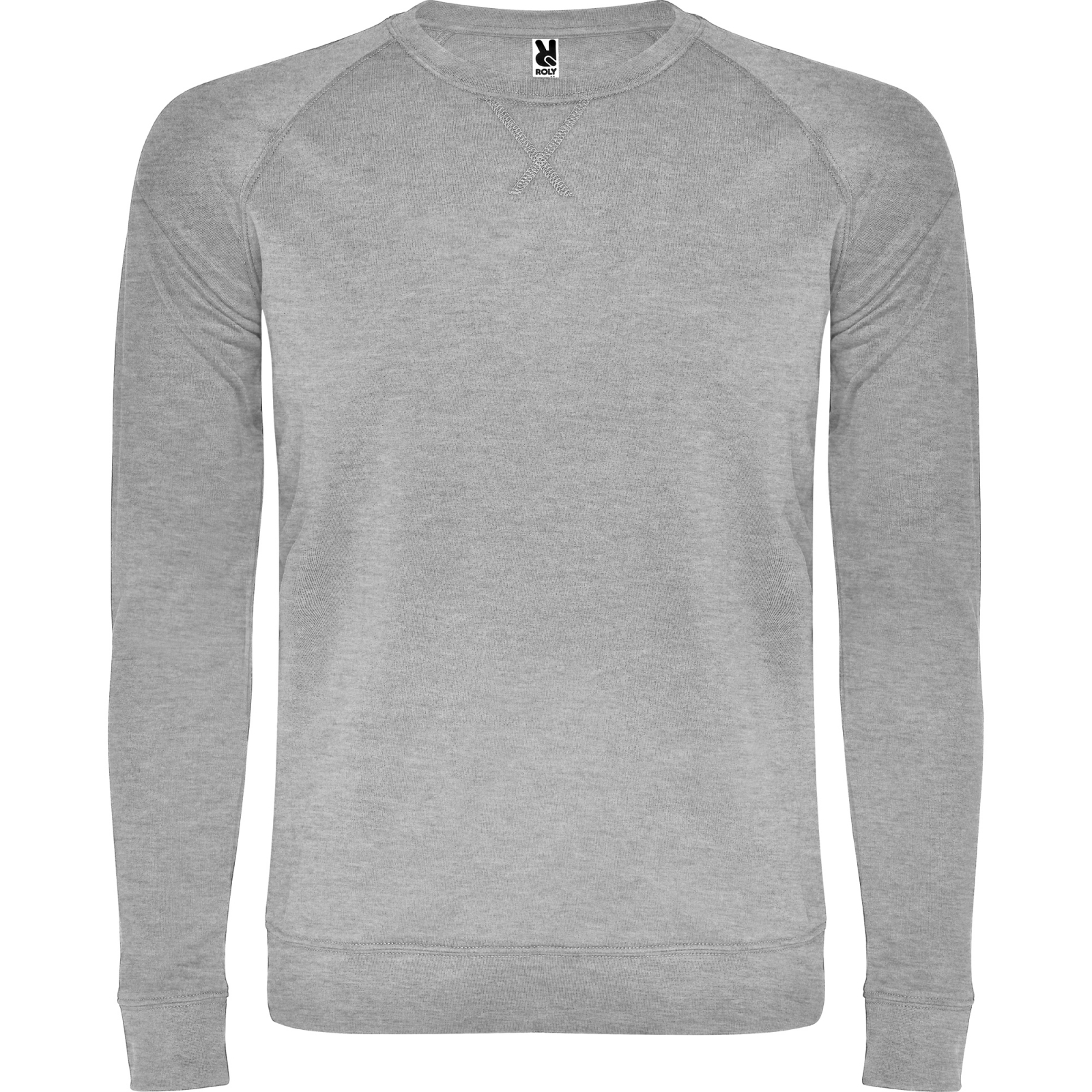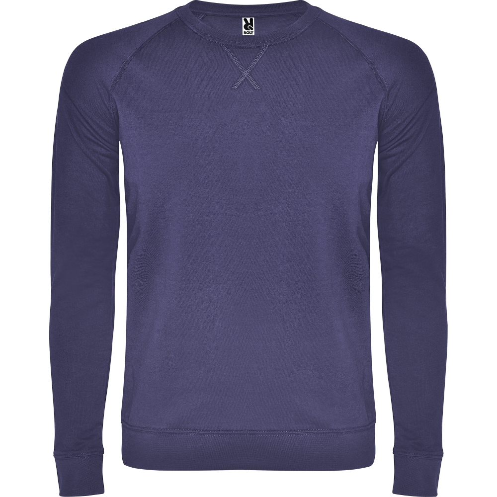 sudadera de algodón de manga entallada estilo ranglán. con cuello, puños y cintura, en canalé 1x1. cuello redondo con adorno de costuras remalladas cruzadas y cubrecosturas de refuerzo en el interior del cuello.