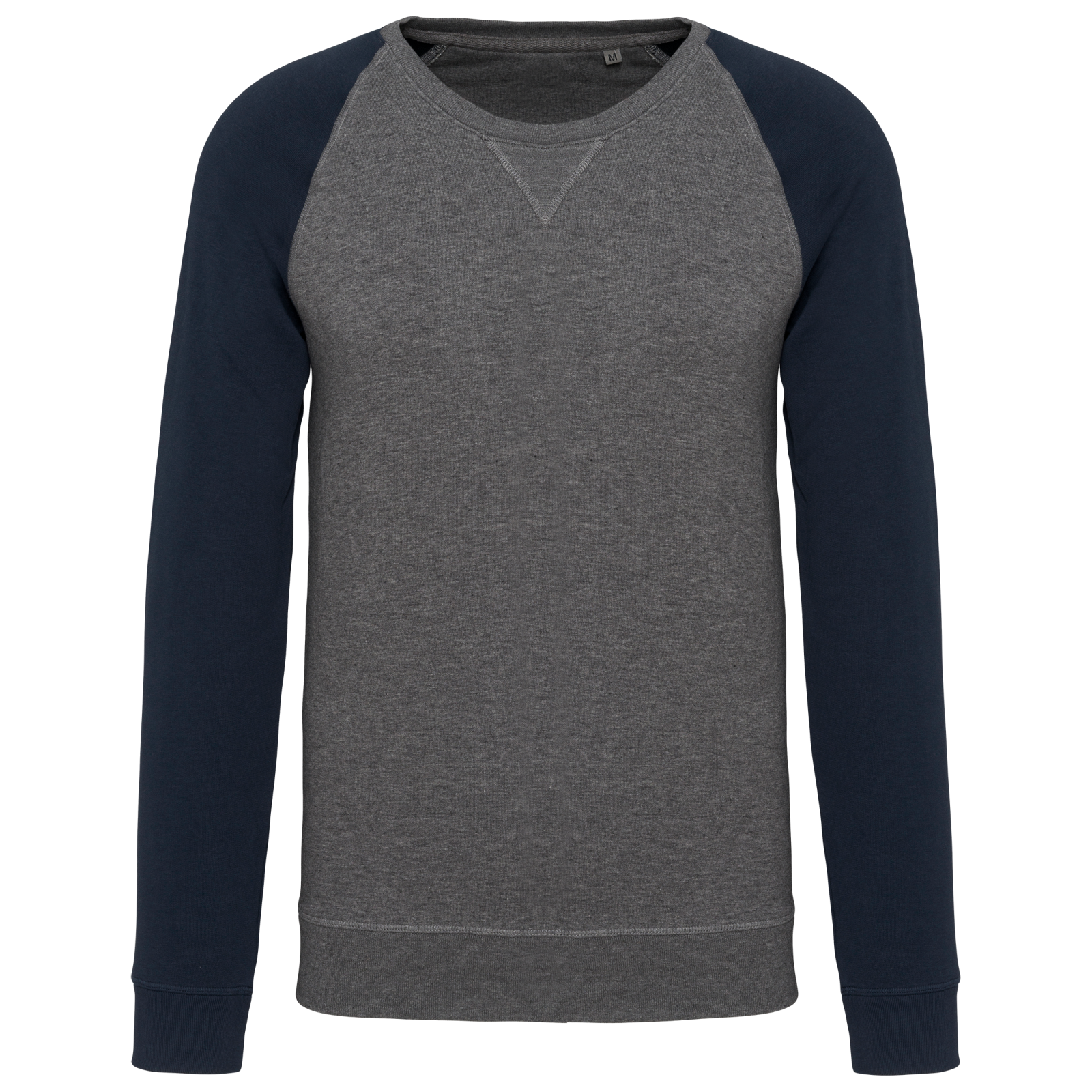 80 % algodón orgánico / 20 % poliéster. felpa no perchada (french terry). lst (low shrinkage terry). canalé en el cuello, puños y bajo de la prenda. tira cubrecosturas de sarga tejido zigzag en interior cuello.  detalle de acabado en v en frontal cuello. sin etiqueta de marca en el cuello, únicamente una etiqueta con la talla para facilitar la personalización.  tejido de escaso encogimiento. colección organic. no label.cuello redondo.manga larga.sudadera cuello redondo.