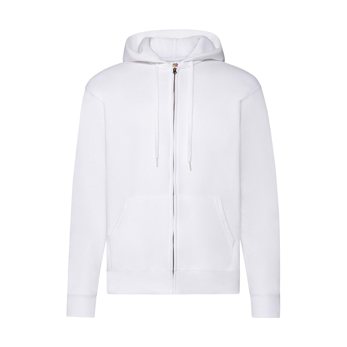 280 g/m². 80% algodón, 20% poliéster. cremallera estrecha oculta para mayor área de impresión. capucha de doble tejido con cuello encintado en punto simple y cordón del mismo color. encintado en cuello en punto simple. dos bolsillos parche delanteros. puño y bajo en canalé de algodón/lycra® para mantener la forma.