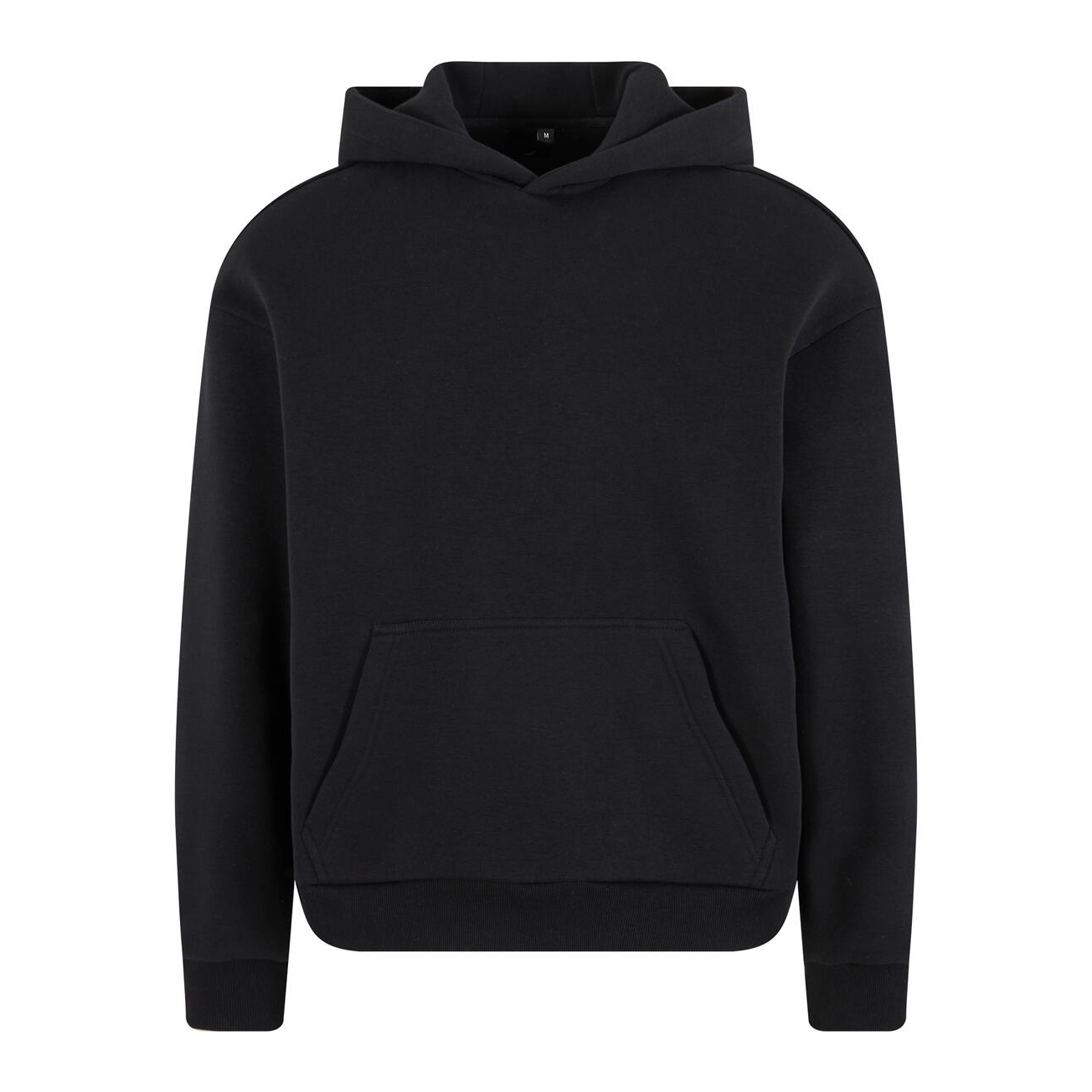 330 g/m² ·70 % algodón, 30 % poliéster ·corte oversize ·con capucha ·hombros caídos ·bolsillo canguro ·puños y dobladillo en canalé.
