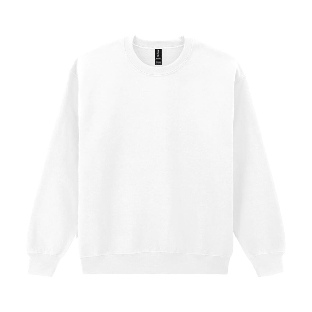 305 g/m² (white: 287 g/m²). 50% algodón, 50% poliéster. costuras dobles en cuello, sisas, puños y dobladillo. mangas montadas; tejido tubular. sin etiqueta textil, serigrafiada con información del producto. nota: tallaje grande.