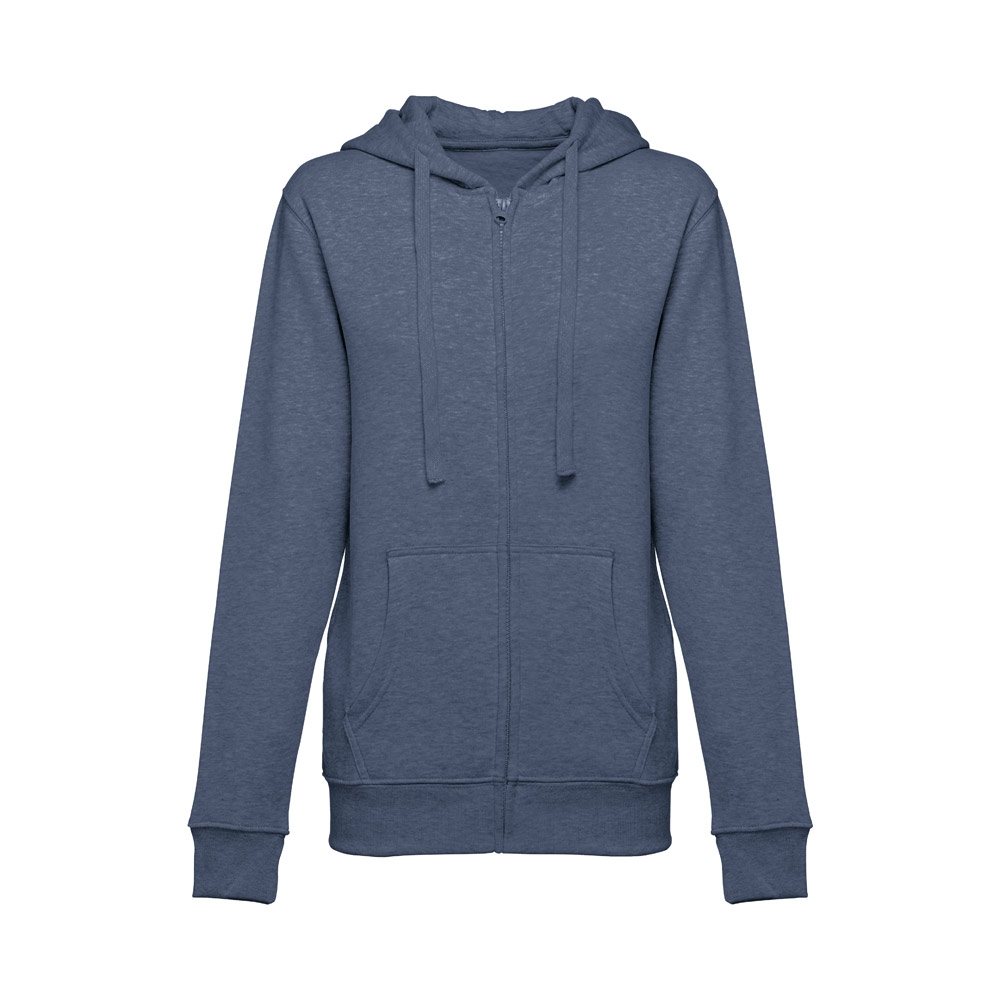 sudadera para mujer compuesta por 50% algodón y 50% poliéster (320 g/m²) con interior cardado. la capucha está forrada y tiene un cierre con cordón a juego con el color de la sudadera. en la zona frontal hay dos bolsillos´marsupiales´ y cierre con cremallera. los puños y cinturilla están rematados con canalé. tallas: s, m, l, xl, xxl