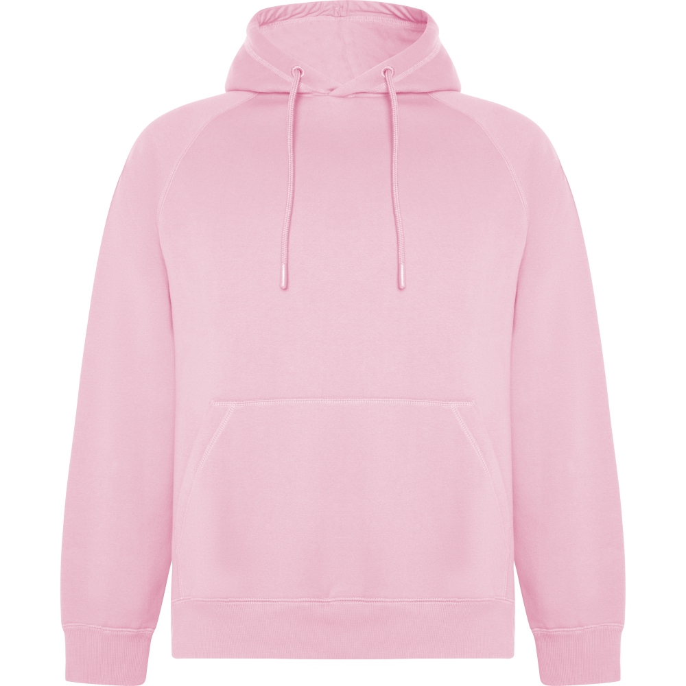 sudadera con capucha unisex en algodón orgánico peinado y poliéster reciclado. bolsillo canguro. capucha forrada de punto liso y cordones redondos ajustables , ojales bordados. cuello puños y cinturilla de punto canalé 2x1.