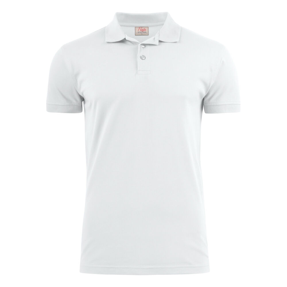 polo piqué elástico con tres botones en la versión masculina y cuatro en la femenina. tapeta y aberturas laterales. oeko-tex.