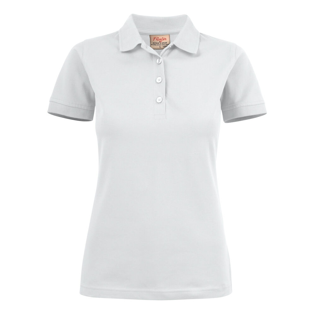 polo piqué elástico con tres botones en la versión masculina y cuatro en la femenina. tapeta y aberturas laterales. oeko-tex.