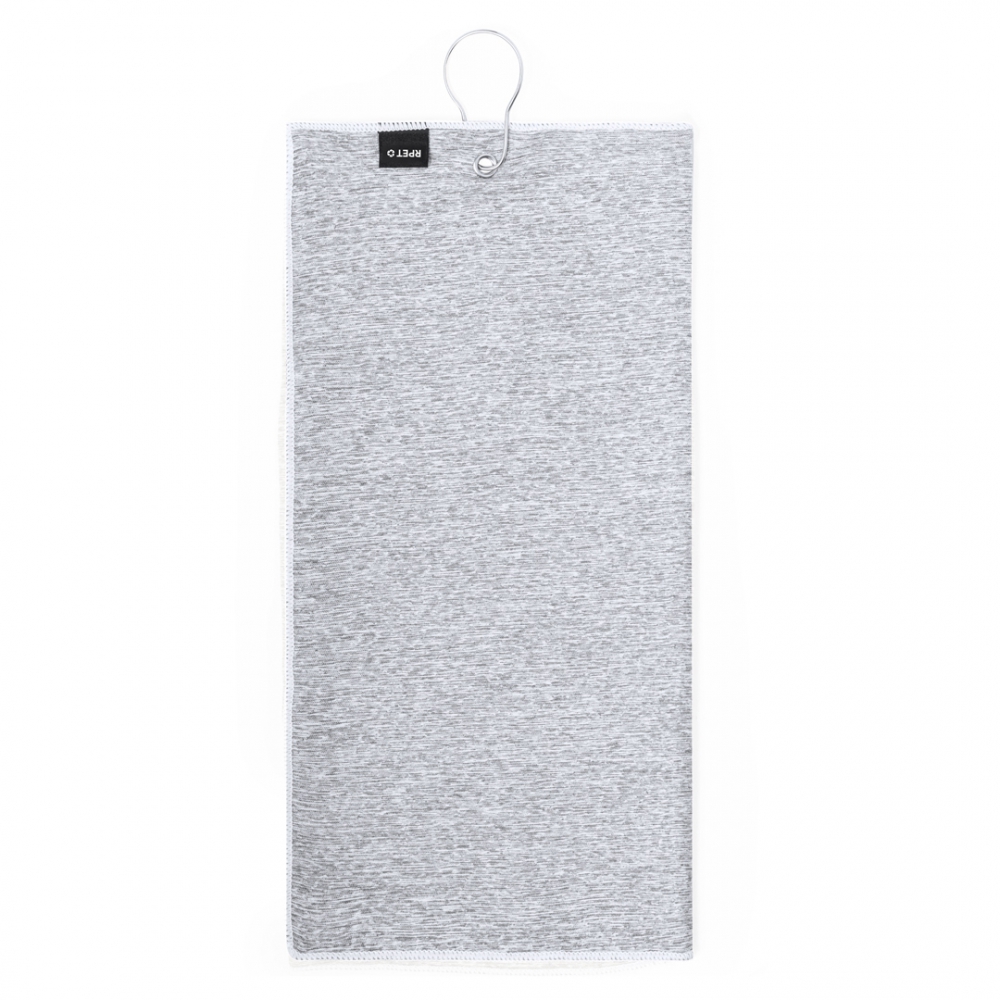 toalla de golf fabricada en rpet, absorbente y suave con dimensiones de 40x60 cm. en el centro, incorpora una argolla reforzada y un mosquetón de acople, ambos elaborados en acero inox. con logotipo rpet en etiqueta.el material rpet se elabora a partir de plástico reciclado, para así fomentar la reutilización de residuos plásticos y ayudar a la sostenibilidad del planeta.